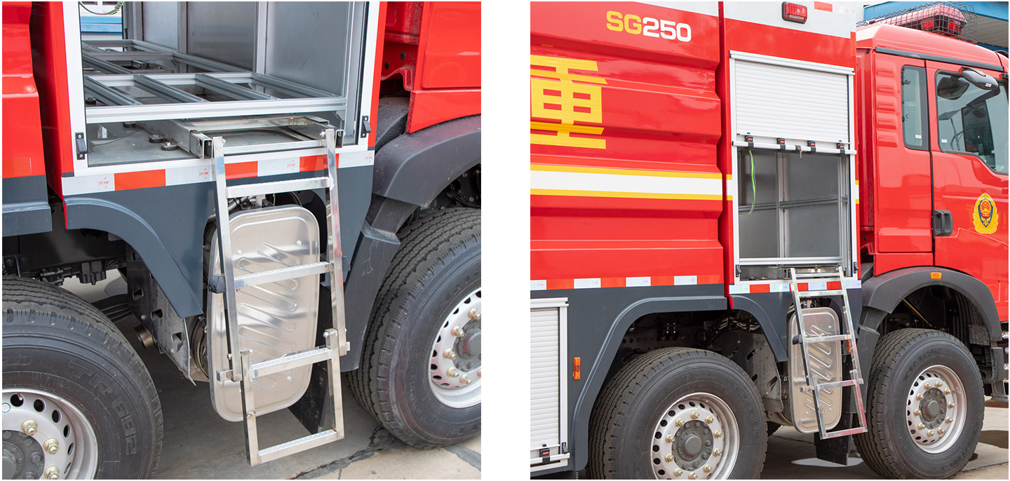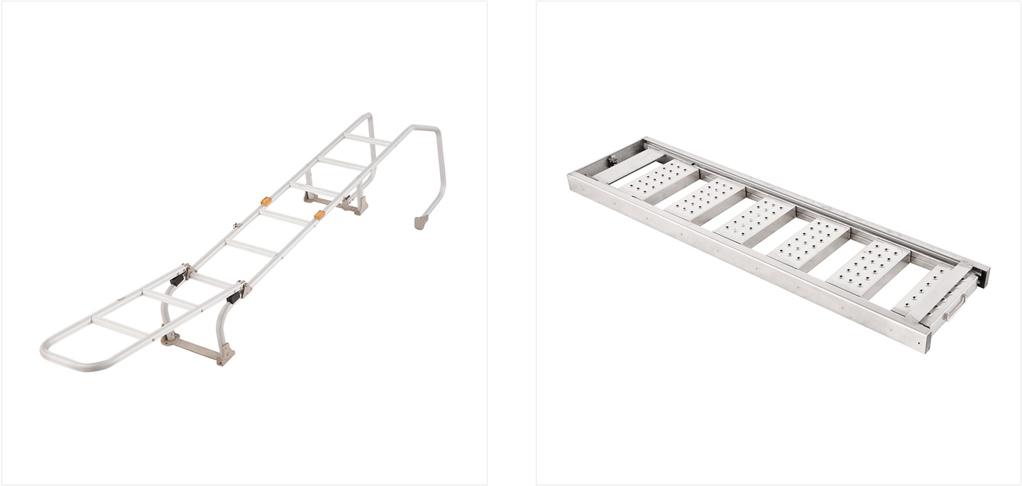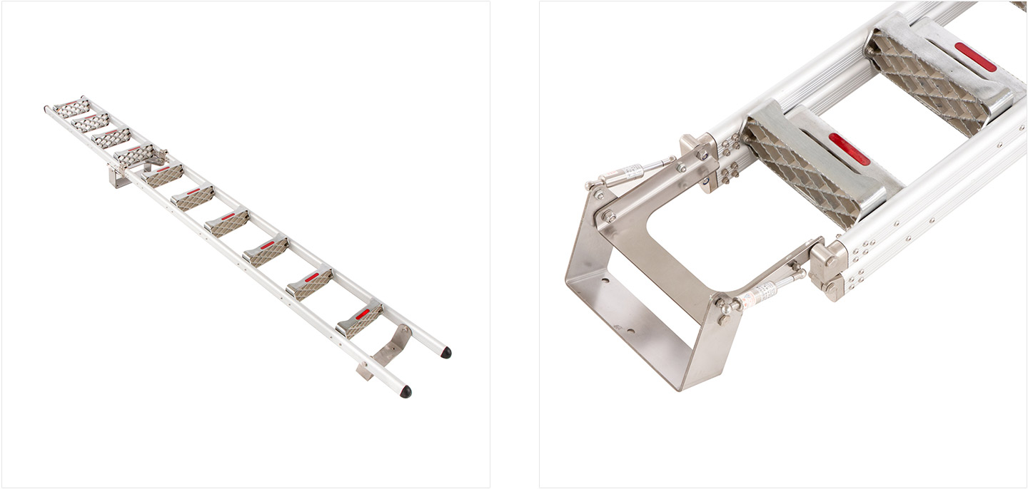 The rear climbing ladder of the fire truck is composed of two columns and a horizontal column connected to the two columns. The material can be customized according to the requirements, mainly made of aluminum and patterned tubes.