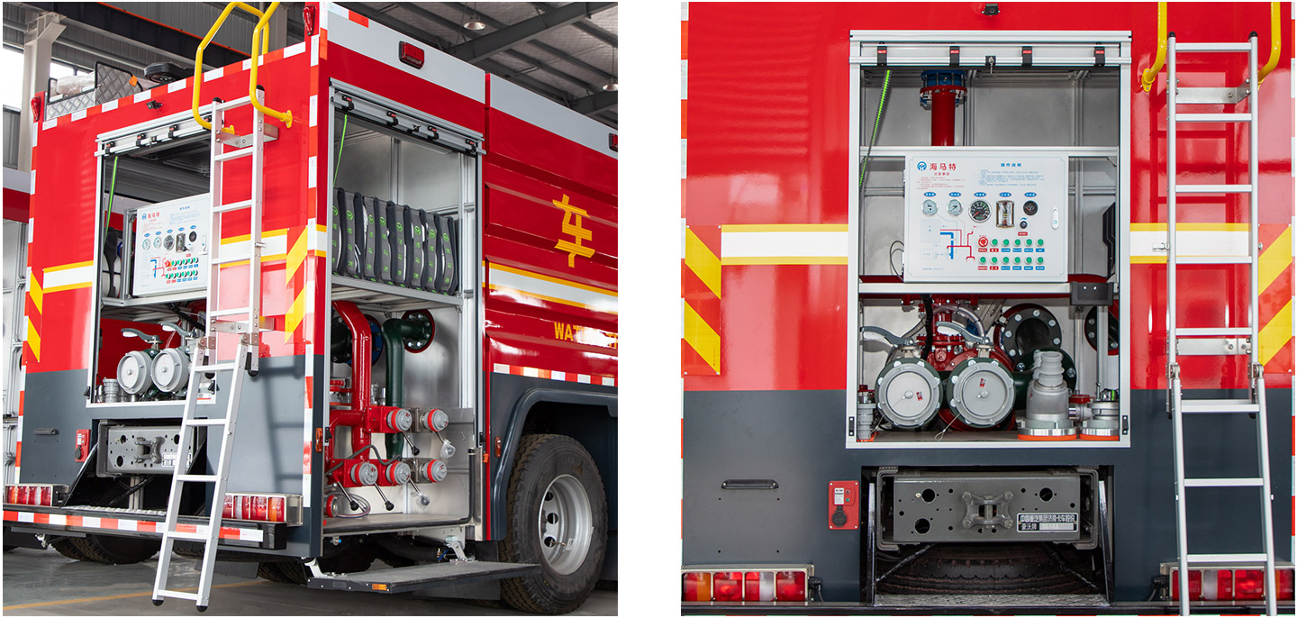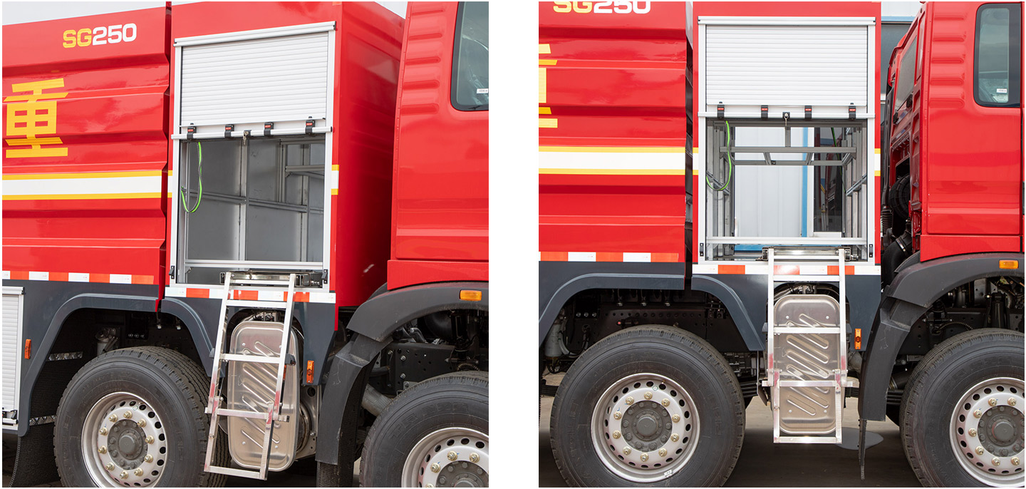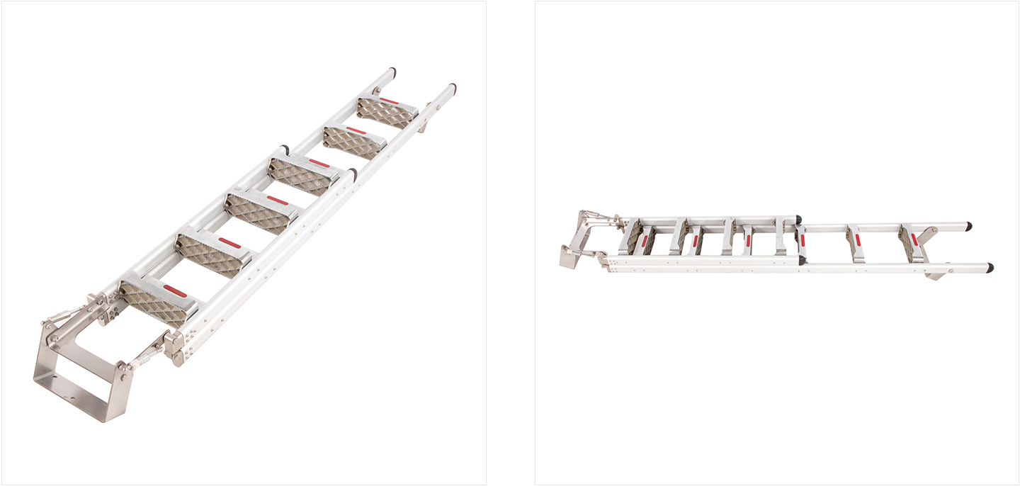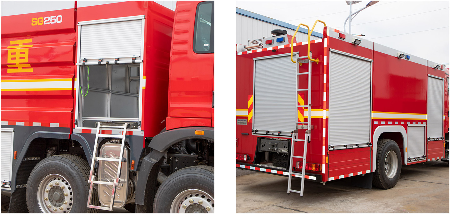 The rear climbing ladder of the fire truck is composed of two columns and a horizontal column connected to the two columns. The material can be customized according to the requirements, mainly made of aluminum and patterned tubes.