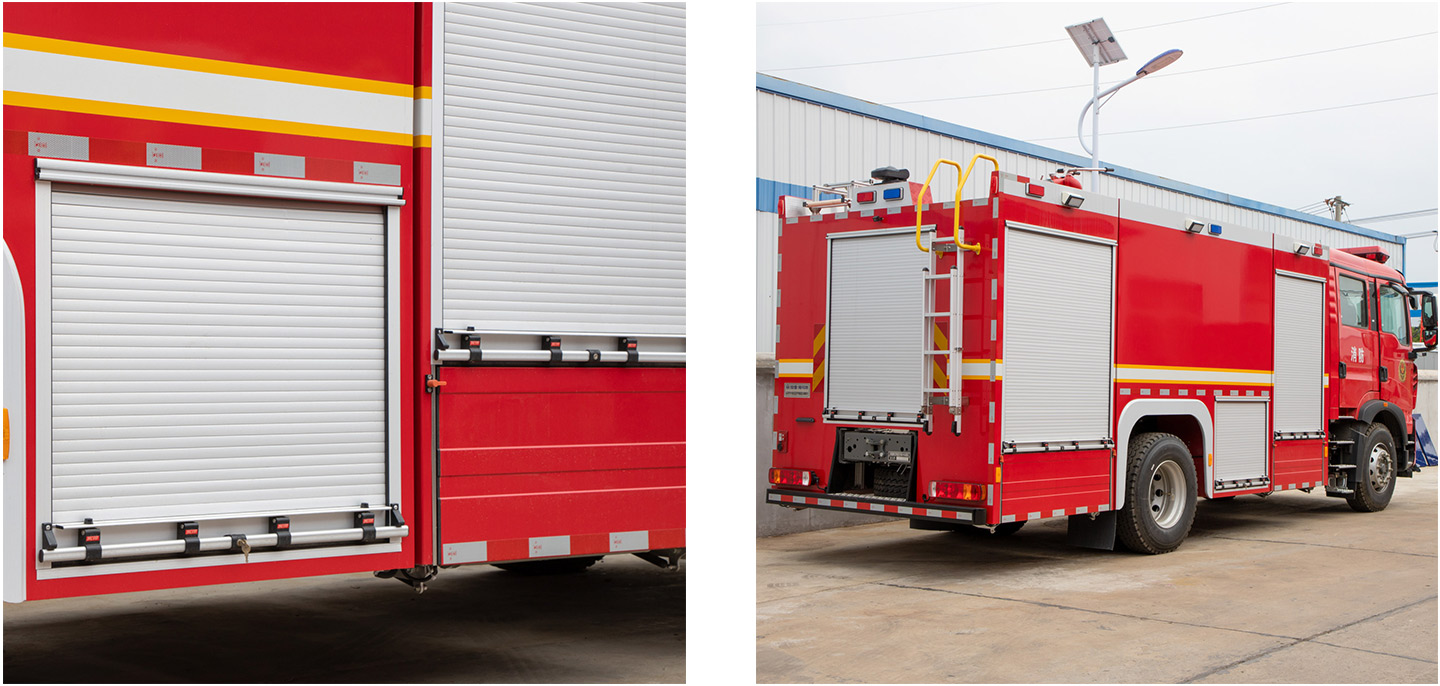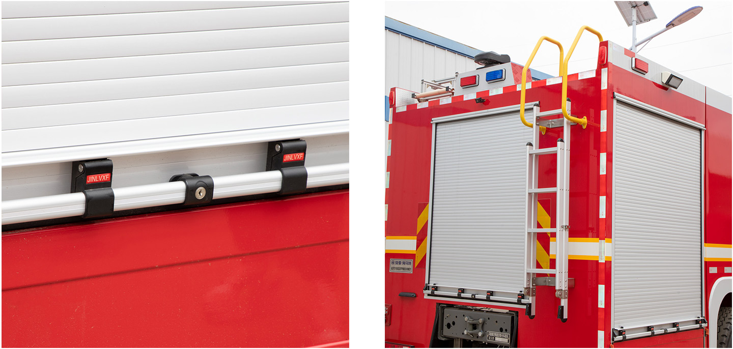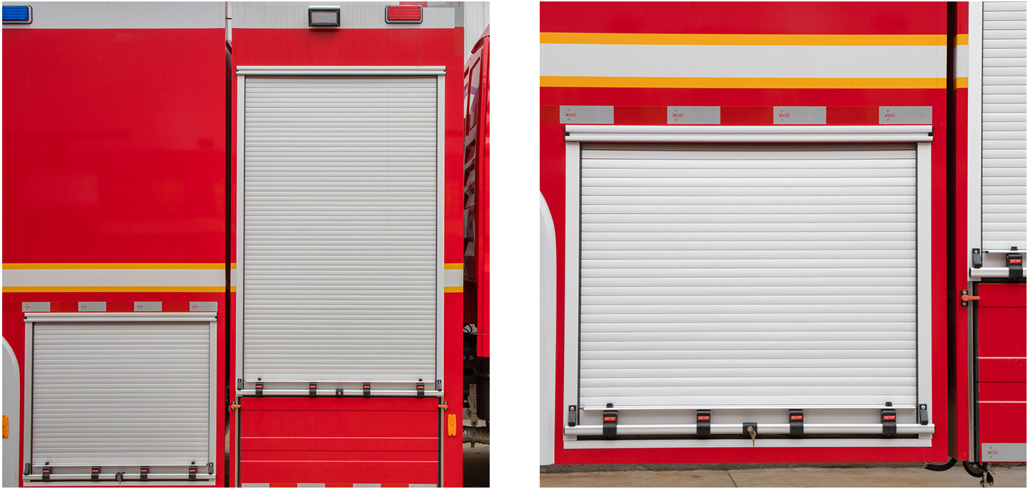 The rolling shutter door used by the fire truck is made of fasting aluminum profile with special surface treatment, which is easy to install, beautiful in appearance, light in weight, waterproof, dustproof and shockproof, and can be regarded as an accessory for fire trucks and other modified vehicles.